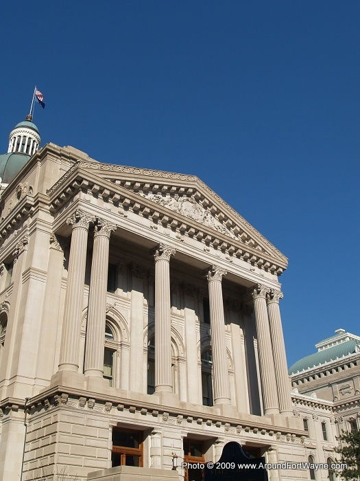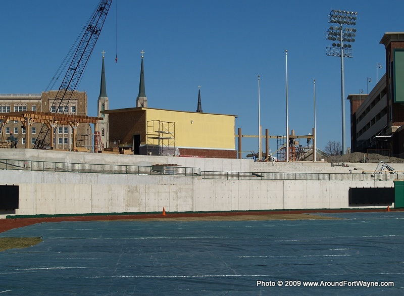 An Open House for Harrison Square was held at the Grand Wayne Center tonight. There were about 125 people in attendance including many representatives from the developers of the project. City officials were non-existence with the exception of Greg Leatherman and one of the City’s PIOs. A short program was given with Mike Nutter, General Manager of the Fort Wayne Wizards baseball team introducing Jason Freier. Mr. Freier is the owner of Hardball Capital which owns the Wizards and is building the Retail/Condo portion of the project. He spoke briefly, guiding us through the updated fly-throughs. (The fly-through is available at Indiana New Center.) He then introduced Scott Travis of White Lodging Services who spoke briefly about the Courtyard by Marriott Hotel to be built at the Northwest corner of the Harrison Street and Jefferson Boulevard intersection. There will be a Champions Restaurant/Sports Bar to be built on the ground floor of the new hotel in the Northeast corner of the building. This is not to be confused with the Champs that has been talked about in The Harrison condo/retail building. Mr. Freier concluded the program by asking for input from the audience members about different seating styles, types of brick to be used and other interior components.