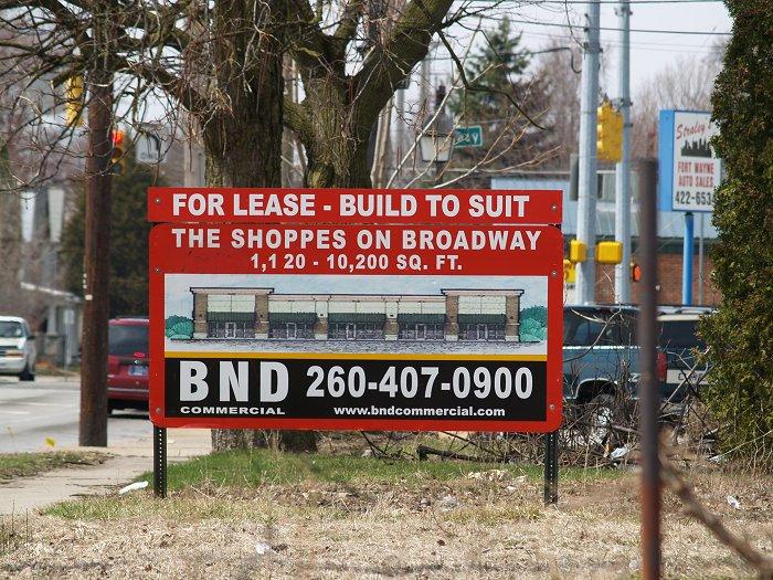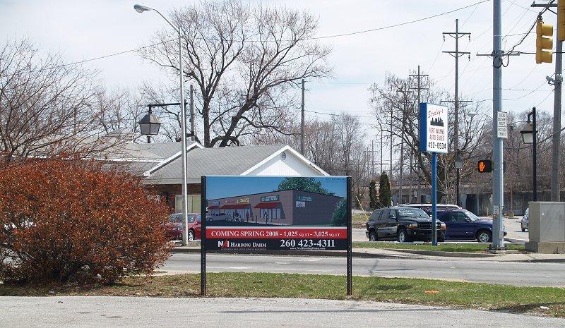 Information from the NAI Harding Dahm website, although it mentions nothing about the subdividing as mentioned on the signs. The lease per square foot is listed at $9.84 and the footage is listed at 6,100. Once subdivided, I would imagine that cost would rise. Either way, contrast $10 or $15 or even $16 with the $32 per square foot asked for in The Harrison. Retail leases around Fort Wayne run $20 on the high end, but the average is much lower.