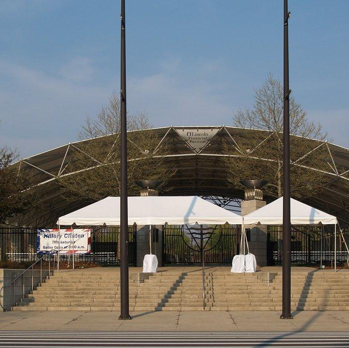 Photos of the Clinton Street entrance to the Headwaters Park Lincoln Financial Pavilion taken Friday evening