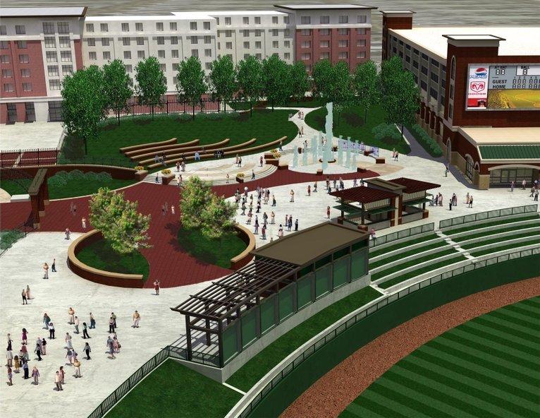 With the parking deck and ballpark construction and to a degree The Harrison on the North side of the outfield wall, the project is becoming more visibly delineated. If you look at these next photos, the flat area in the foreground is what will eventually become a parking lot. This parking lot will be used by The Embassy Theatre to park show buses and other trucks. This was part of the Walkway agreement. The background, up the slope, is what will become the Robert E. Meyers Park.