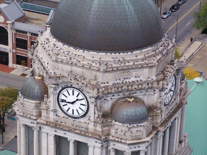 An article in Friday’s Journal Gazette by Amanda Iacone highlights some of the repairs need to the Allen County Courthouse. Â I have blogged about the bird issue before, in fact January 25th 2008. Â Anyone who has spent time in the downtown area knows first-hand the flocks of birds that gather ’round the courthouse and more importantly, what they leave behind. Â One thing the article doesn’t mention, which I would be curious to find out, is if there are plans to install anti-flocking measures on the courthouse. Â If not, the problem will only be back again as every year, more and more birds seem to gather. Â These measures can be controversial and stir up the environmentalists, but protection is needed. Â The Lincoln Tower employs a system that broadcasts periodic Falcon cries. Â When the system first went in, several phone calls a week were directed to the property manager about trapped birds at the Tower. Â Whatever the answer, I’m surprised the issue was not addressed.