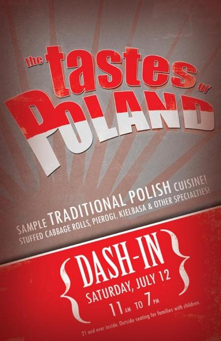 The Dash-In’s annual “Tastes of Poland.”  The hours are from 11 am to 7 pm, family seating is available outside, but you must be at least 21 to enter the inside.  The Dash-In is at 814 South Calhoun Street.