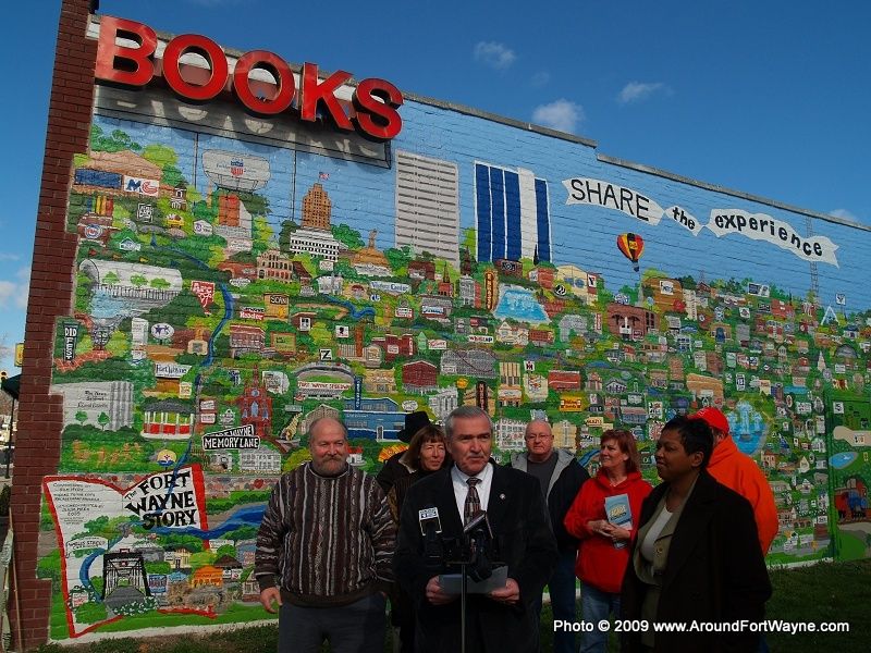 Hyde Brother’s Book Store will celebrate the completion of its 75 foot exterior mural, “The Fort Wayne Story: Share the Experience” with its official unveiling, on Thursday, September 17th, at 6:30 pm.