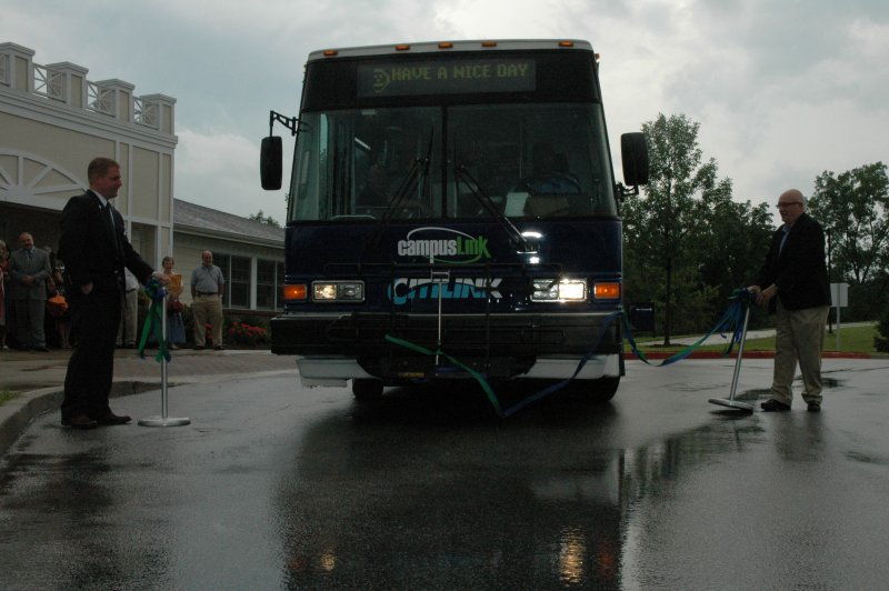 (August 17, 2010) – This afternoon, Ivy Tech Community College-Northeast, IPFW, and Citilink celebrated the new shuttle service, campusLink, with a special ribbon-cutting and kickoff event at Cole Commons at IPFW Student Housing on the Waterfield Campus. The service will be offered to students, faculty, staff, and even the general public beginning Monday, August 24, 2009.