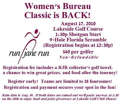 You can also register for our run, jane, run Golf Classic by visiting www.womensbureau.com. Click on “Special Events.”: