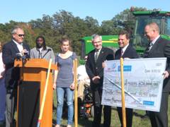 (September 30, 2010) – Mayor Tom Henry, Parks & Recreation Director Al Moll and Taylor Reuille from Taylor’s Friendship Circle announced today that thanks to the overwhelming participation of Fort Wayne residents, and their friends and families, Taylor’s Dream Boundless Playground won the Pepsi Refresh Challenge and will be granted $70,000. After the announcement, the Mayor, with help from Taylor and Director Moll, broke ground in Kreager Park to officially mark the start of Indiana’s first Boundless Playground project.