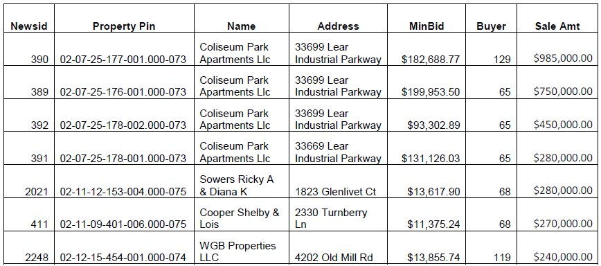 We had 1,056 properties go into the sale with taxes owing of $2,713,174.10. The properties that did not sell will be deeded to the County.