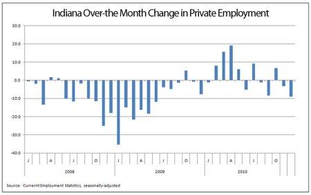 “Indiana’s unemployment rate is at its lowest level in almost two years,” said Mark W. Everson, Commissioner of the Department of Workforce Development. “Over the course of 2010, we saw growth in manufacturing and professional and business services, partially offset by declines in construction.”