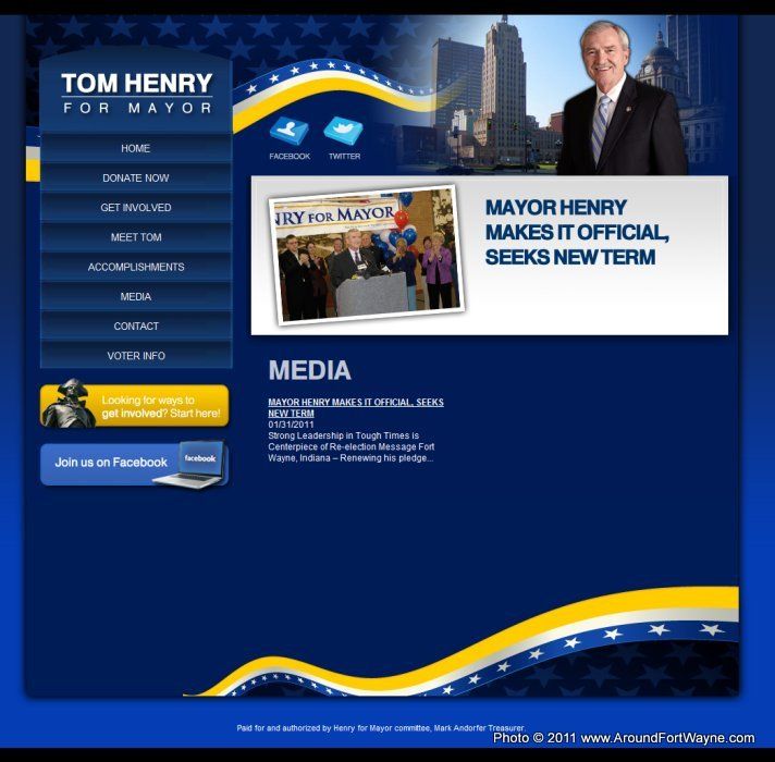 I have to admit I was surprised, at first anyway, to see https://twitter.com/tomhenry4mayor and https://www.facebook.com/profile.php?id=657618734 links on the page.