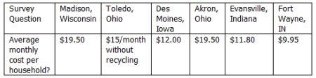 [/list]Additionally, the council members unveiled a new study, showing that Fort Wayne garbage rates are actually lower than comparable communities. The survey, by Gershman, Brickner and Bratton, compared Fort Wayne’s average monthly cost per household for waste services against other cities equivalent in size and services. Resident’s recycling and garbage costs are lower than the following cities: