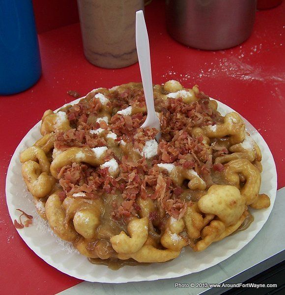 AroundFortWayneAFW OriginalsAttractions/Community CalendarThree Rivers Festival Maple Bacon Funnel Cake at TRF Saturday, July 13th, 2013 FacebookTwitterPinterestTumblrEmailPrint This year, Momma Jane Harris has brought a new creation to the Three Rivers Festival: A Maple Bacon Funnel Cake. Related Images:
