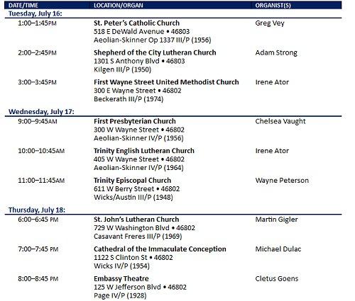 July 16-18 is the annual Follow the Pipes self-guided tour of area churches and their pipe organs. Several churches will be featured each day with music, a brief history of those churches, as well as a concert at the Embassy Theater featuring their pipe organ “Miss Page”.