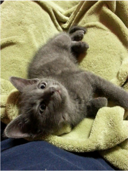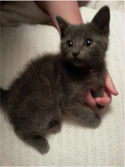 (June 26, 2014) – During his routine morning walk on Monday, a good Samaritan spotted something in the middle of North River Road in New Haven, IN. Upon further investigation it was a clear plastic, zippered bag – similar to packaging for new bedding – with three tiny kittens trapped inside. The bag had been run over by a vehicle, and only one kitten was alive. The lone survivor, now named Mercy, was brought to the Allen County SPCA along with her deceased littermates.