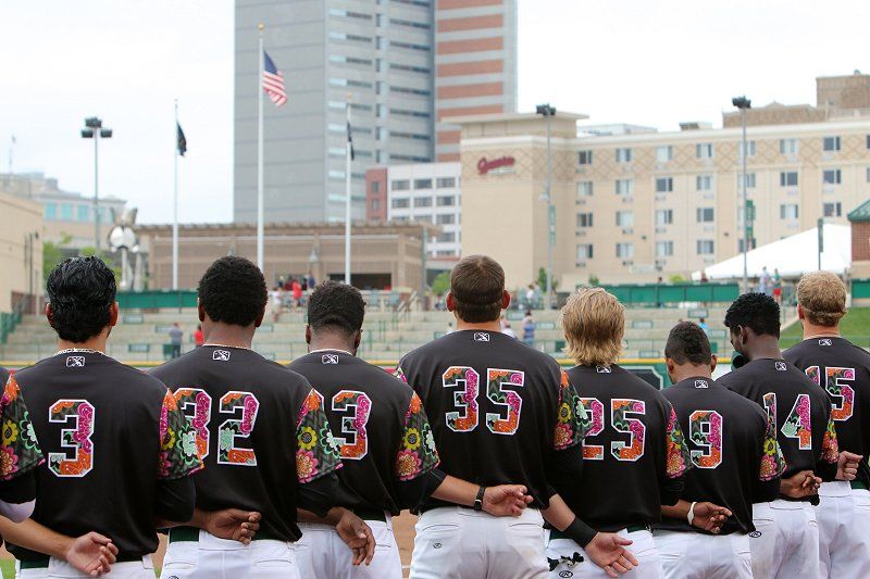 The TinCaps’ jerseys featured a new Vera Bradley pattern for Fall 2014 called Ziggy Zinnia. The colorful pattern covered “TinCaps” across the front of their jerseys, as well as their numbers on the front and back, and sleeves.