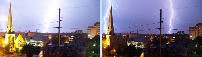 As has sometimes been the case with new cameras, a lesson was learned with this session. Next time, the AFW webmaster needs to remember to not rely solely on the tripod to hold the camera steady. A strong thunderstorm helped to loosen the grip on the camera so that by the end of the run, the camera was tilting to the right. Lesson learned!
