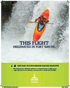 The “This Flight” campaign was launched after American Airlines’ announcement of new nonstop service from FWA to Philadelphia and Charlotte, N.C. The premise behind the print ads was to remind the community that, with access to seven major hubs, travelers could get anywhere from FWA – including popular connecting opportunities through the hubs. The ads feature compelling images that depict a “flight” taking place (for example, over a waterfall, in a hot-air balloon or atop someone’s shoulders), all originating from FWA. The ads depict “flights” in Philadelphia, Charlotte, New York City and London.