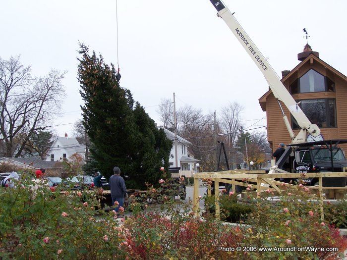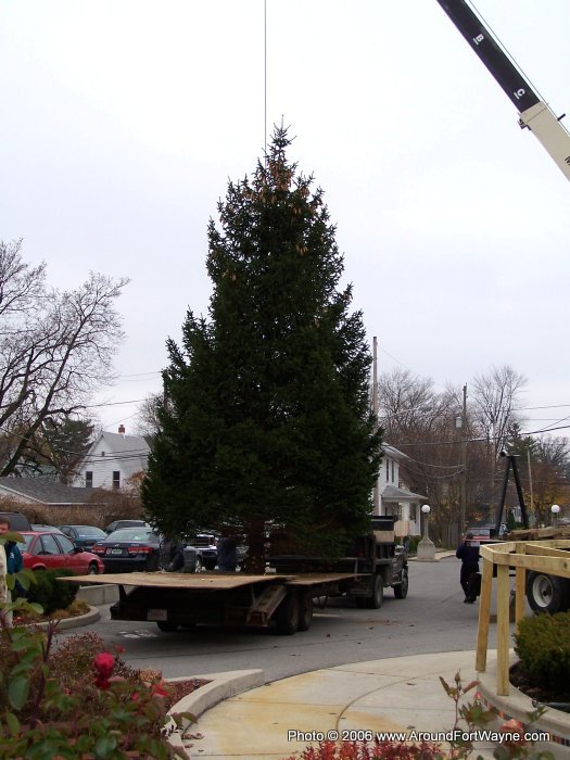 Preparation for the event began early this spring when Steve Shine, the event’s coordinator and partner in Shine & Hardin, LLP, whose offices are located on the Broadway Plaza where the tree is located, reviewed the multitude of offers from area residents to donate their trees for use as this year’s “Christmas on Broadway” tree. A final selection of the tree was made soon thereafter, with the tree donated by Laura Wilson topping the list. “This year’s tree is a magnificent forty-foot spruce, whose commanding presence will be adorned by 25,000 glittering lights,” said Shine. “It will be a festive holiday sight for all of Fort Wayne to see.”