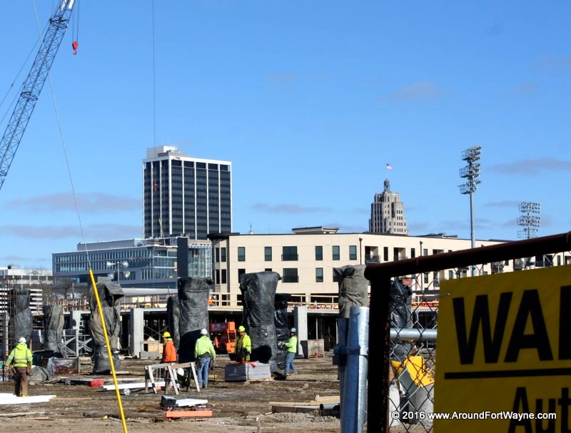Cityscape Flats, one of the current under construction projects in downtown Fort Wayne, with one of the other projects in the background – the Ash Skyline Plaza.