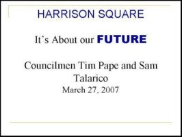 Presenting on the “pro” side of the then proposed Harrison Square project, were Councilmen Tim Pape and Sam Talarico, Jr.