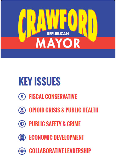 • Fiscal Responsibility: Crawford believes the City needs maximum fiscal responsibility with minimum regulation on business to keep more money in the private sector. He will start with a zero-based budget to reorder priorities and cut costs. Major battles with the present Mayor to eliminate collective bargaining and enact a pay-to-play ordinance have already saved money. Much more can be done.