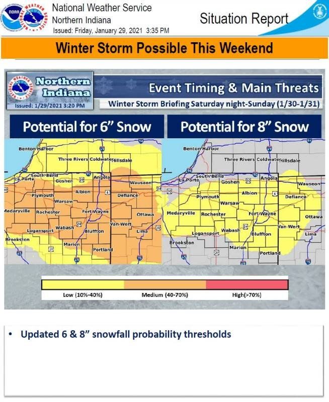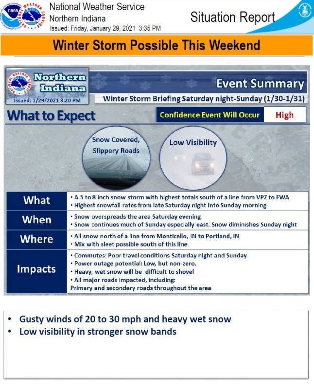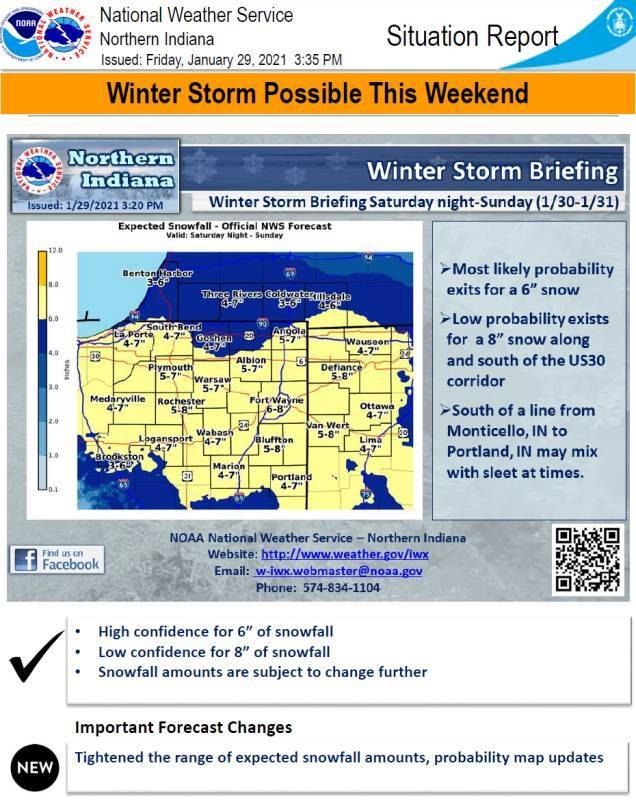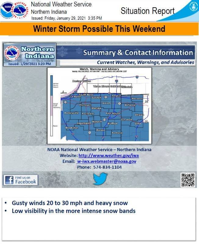 The National Weather Service has issued a Winter Storm Watch for tomorrow night into Sunday night. Here are the updated situation report and video.