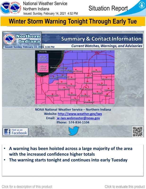 Situation Report from the National Weather Service advising and updating the major winter storm headed our way.