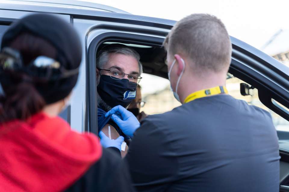 Gov. Holcomb Gets COVID-19 Vaccine at Indianapolis Motor Speedway