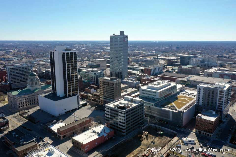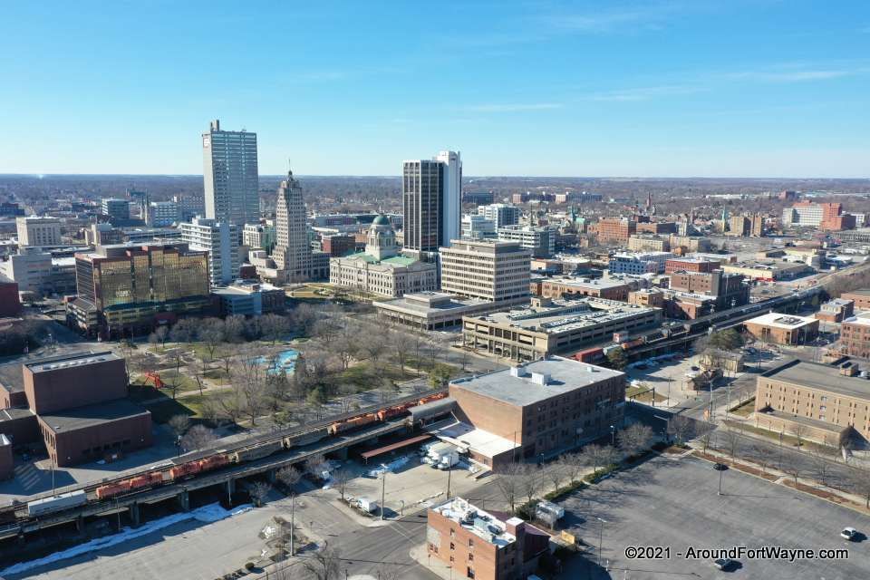 Here’s a selection of photos from the downtown area including Aunt Millie’s Bakery, the Ewing/Fairfield/Superior roundabout, Headwaters Park, and Old Fort Wayne. These were taken yesterday, March 7, 2021, using a DJI Mavic Pro 2 Drone.