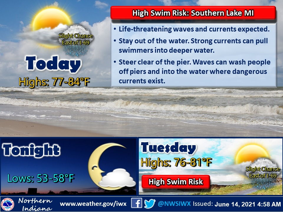 Webmaster’s note: In case you’re headed to Lake Michigan, there is a High Swim Risk warning. Download the Situation Report from the NWS.