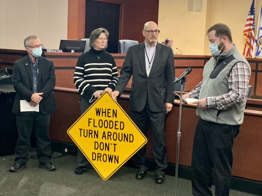 Signs to be placed at high priority areas for floodingFort Wayne, Indiana (December 10, 2021) — Allen County has been awarded a set of Turn Around Don’t Drown signs by the National Weather Service to be placed along roads especially prone to flooding. The signs were presented to the Board of Commissioners during its legislative session today.
