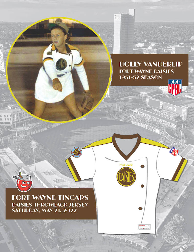 The Fort Wayne TinCaps are partnering with the All-American Girls Professional Baseball League (AAGPBL) to host a Fort Wayne Daisies Throwback Night on Saturday, May 21 (6:35 p.m.) as the TinCaps — wearing special Daisies-themed jerseys — take on the West Michigan Whitecaps (Detroit Tigers affiliate).