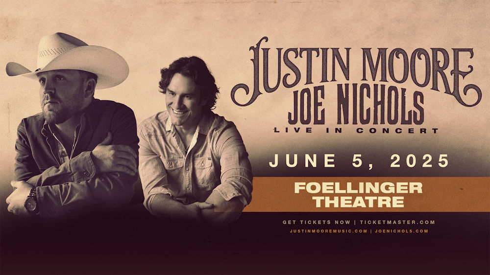 Fort Wayne Parks and Recreation announces that Fort Wayne’s Foellinger Theatre will host multi-platinum-selling country artist Justin Moore and Joe Nichols live in concert June 5, 2025.