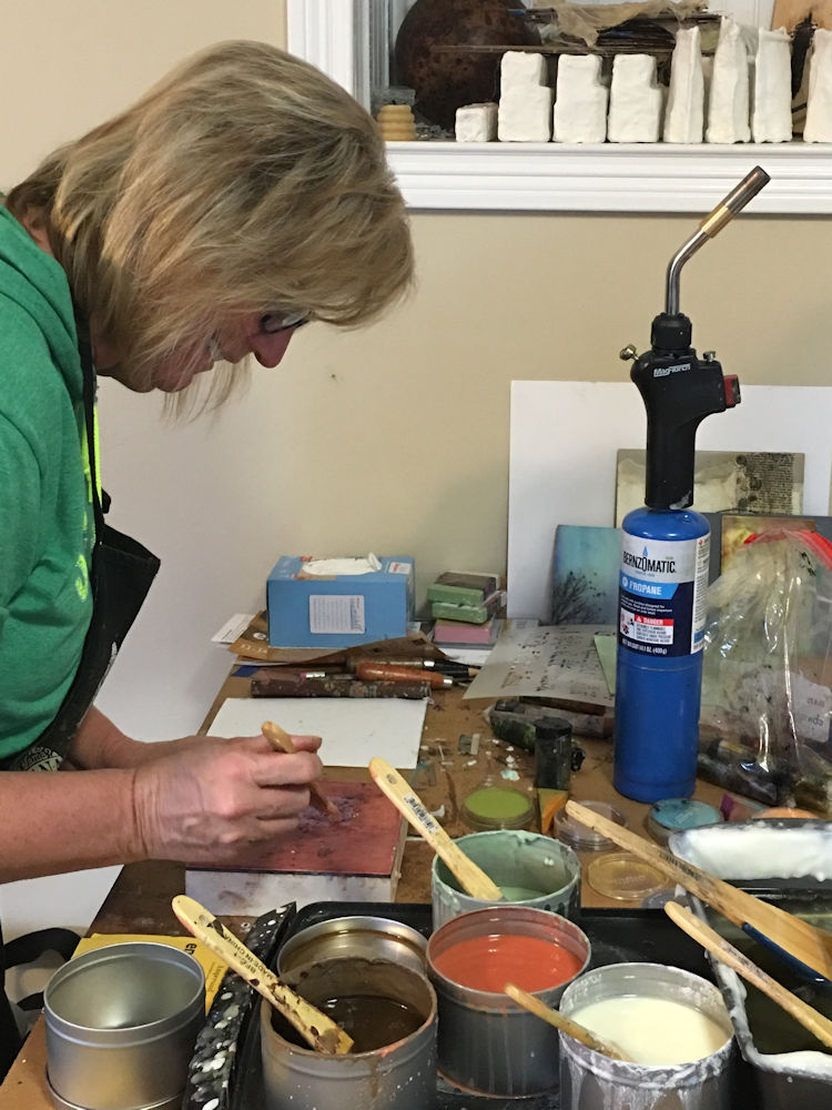 Ruth Koomler working on Encaustic, Photo courtesy of the Ruth Koomler Art Gallery.