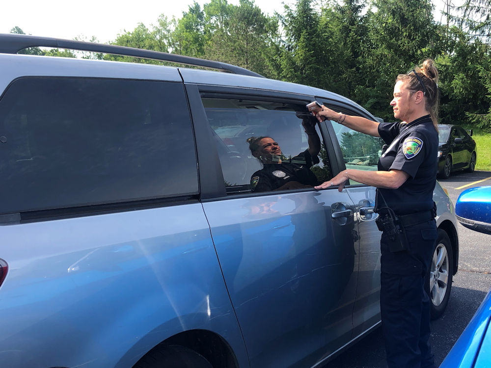 Fort Wayne Animal Care and Control officer taking a temperature reading from inside a car. Photo provided by ACC.