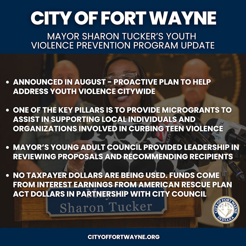 Key points of the update from Fort Wayne Mayor Sharon Tucker on the City of Fort Wayne’s Youth Violence Prevention Program. Image provided by the City of Fort Wayne.