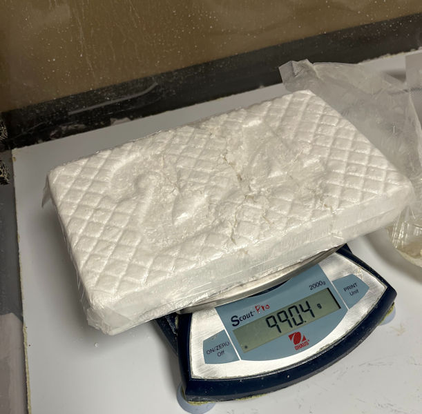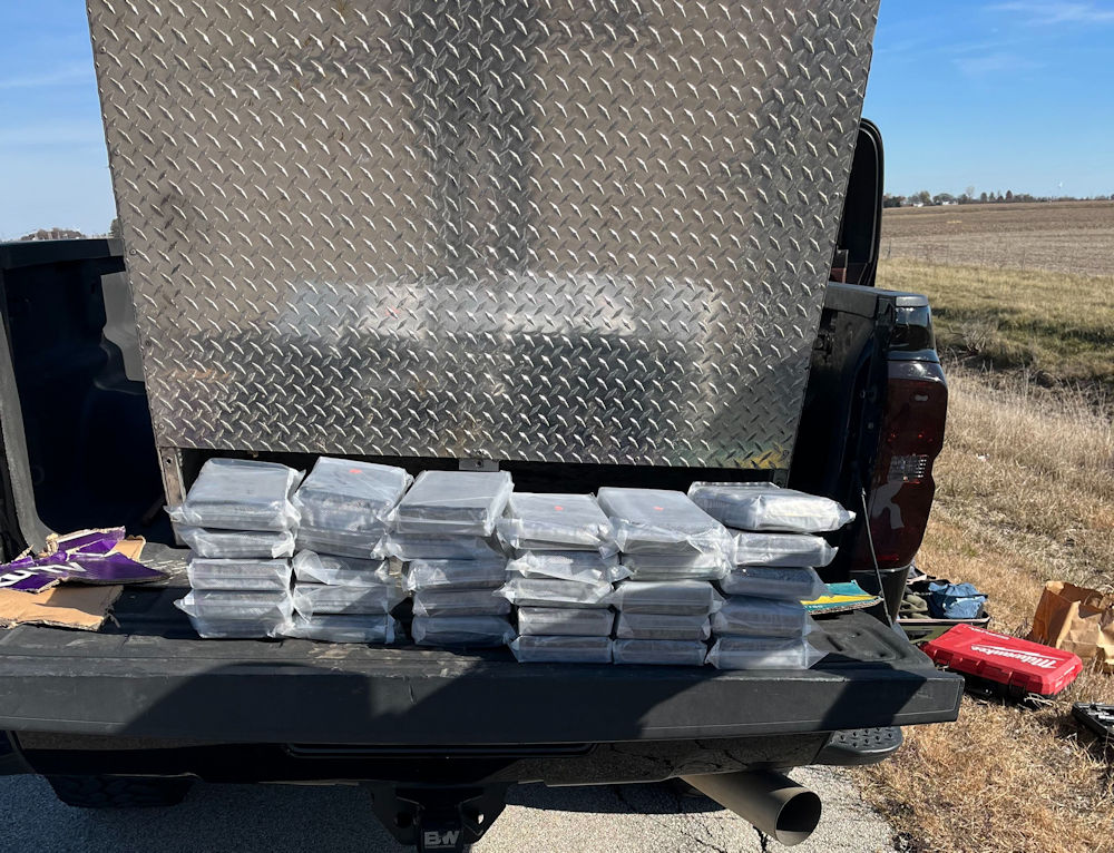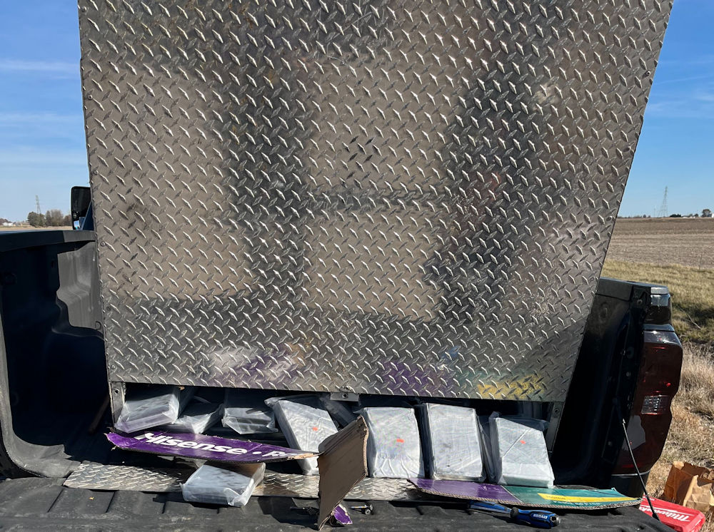 On Thursday, 06 November 2025, uniformed detectives from the Fort Wayne Police Narcotics Division made a traffic stop on a black 2019 Chevy Silverado with Florida plates, for speeding. During the course of the traffic stop a Fort Wayne Police K-9 team did an open-air sniff for the presence of narcotics and gave a positive alert. When the driver was asked to get out of the truck a Springfield Armory .45 caliber handgun was seen in plain view. Detectives observed a large dog cage with a dog in the bed of the truck. A closer inspection of the cage revealed an after-market, manufactured hide (compartment) on the underside of the cage. When the access panel was removed detectives found approximately 30 individually packaged kilos of cocaine with a street value of $600,000 to $800,000.