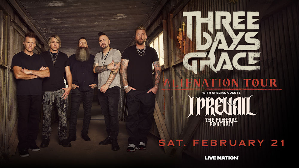 Three Days Grace is announcing their 2026 Alienation tour, kicking off in Fort Wayne, Indiana on February 21, 2026, at the Allen County War Memorial Coliseum, before hitting Canada and Europe