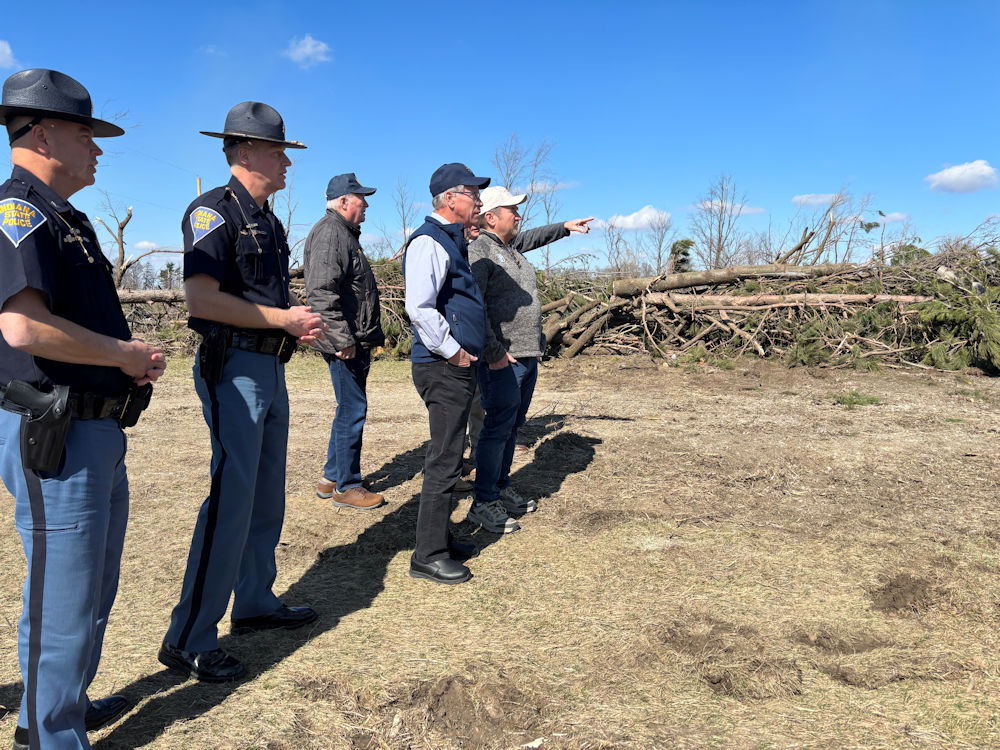 During the visit, Governor Braun conducted an aerial survey of storm damage, met with emergency response personnel at the Lake Village Fire Department, and completed a ground survey to assess the impact on affected communities and speak to those affected directly.