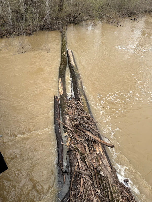Highway Department Director, Bill Hartman, shared that, “This is a creek that a lot of kayakers use; often putting in somewhere north of St. Joe and then floating down to Shoaff Park. With the high water and this area of big logs across the stream, they could get into a lot of trouble here.”