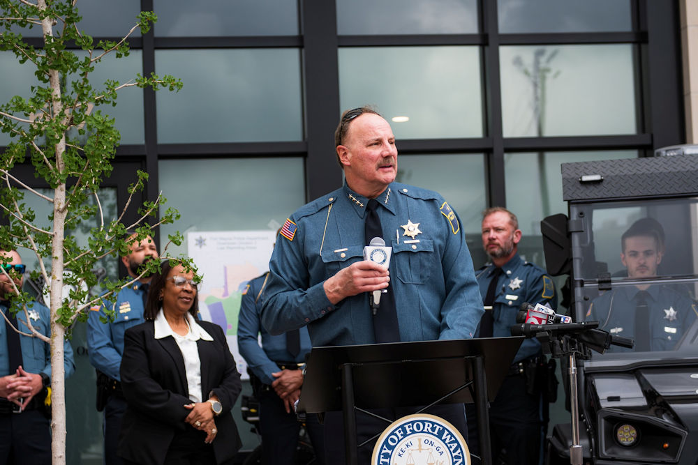 FWPD Chief P.J. Smith speaks during the launch of the FWPD Downtown District on April 15, 2026. Photo courtesy of the City of Fort Wayne.